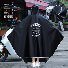 备美电动电瓶摩托车雨衣长款全身防暴雨单人时尚男女加大加厚雨披 黑色-有镜 XXXXL