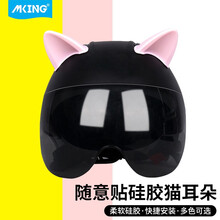 美型 摩托车头盔耳朵装饰电动车吸盘头盔装饰品硅胶粘贴个性创意儿童电瓶车安全帽配件 猫耳朵 两个装 粉色
