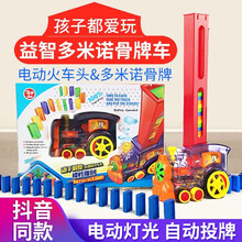 儿童玩具多米诺骨牌小火车电动发牌简易安装自动摆放可转向骨牌儿童节礼物送男孩女孩宝宝 多米诺骨牌小火车(透明车身)