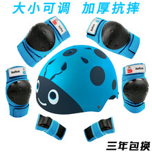 酷峰轮滑护具儿童全套平衡车自行车头盔溜冰滑冰鞋滑板专业防摔护膝套装 蓝色护具+头盔 S码适合20-45斤