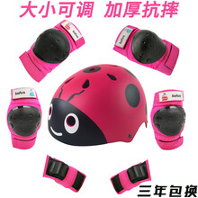 酷峰轮滑护具儿童全套平衡车自行车头盔溜冰滑冰鞋滑板专业防摔护膝套装 玫红护具+头盔 M码适合45-75斤