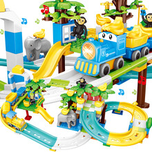 儿童益智拼插拼装积木大颗粒兼容乐高积木男女孩火车电动轨道积木玩具车 果树林款积木轨道车盒装
