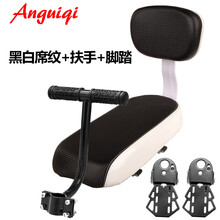 Anguiqi 自行车后座椅坐垫山地车加厚货架靠背座垫儿童座板单车带人车座电动车后座椅骑行装备 黑白席纹(带靠垫)+扶手+脚踏