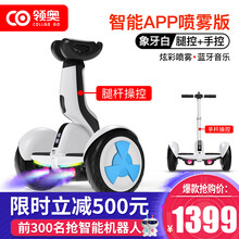 领奥品牌智能电动平衡车儿童成人男孩女孩思维车自动体感平行车二轮自平衡车越野款小孩双轮10寸手扶带扶手 54V喷雾版白【双控+蓝牙音乐+APP+自平...