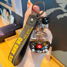 MKING 汽车招财猫钥匙扣创意挂件摩托车钥匙链防丢手链包装饰电动车钥匙环卡通公仔儿童手带 入油黑金招财猫