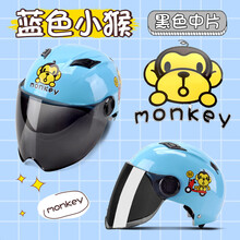 Andes小孩儿童头盔电动摩托车头盔可爱卡通女童夏季防晒防雨女轻便半覆式电动车安全帽四季通用 蓝小猴黑中 均码