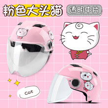 Andes小孩儿童头盔电动摩托车头盔可爱卡通女童夏季防晒防雨女轻便半覆式电动车安全帽四季通用 粉小猫透中 均码