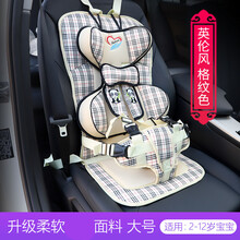 儿童安全座椅简易便携式车载婴儿宝宝0-5 3-12通用汽车用绑带坐垫 柔软面料格纹色小号(适用0-5岁)