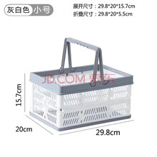 可折叠篮子塑料手提篮购物野餐便携收纳篮家用车载杂物筐塑料筐子 灰白小(30*20*15CM)