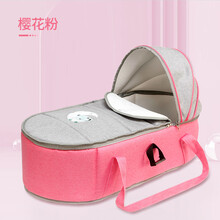 迪士尼新生婴儿提篮便携车载外出安全带手提篮子宝宝出院床中床平躺睡篮 樱花粉 粉色小熊