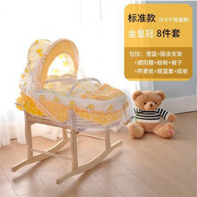 婴儿摇篮床手提篮新生儿车载便携式婴儿篮子手提篮睡篮宝宝篮子草编摇篮床 标准款---金皇冠8件套