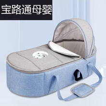 婴儿提篮安全提篮婴儿篮子手提新生儿提篮新生婴儿提篮车载外出便捷摇篮折叠睡篮宝宝床中床月子安全床篮子 宝蓝色 格里蓝