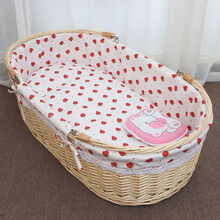 婴爵 婴儿摇篮藤编床新生儿Bb便携手提篮车载哄睡篮无漆宝宝床窝蓝实木 70厘米篮子+垫子内衬凉席 敞篷款式