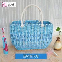 车载洗漱篮子手提洗澡篮子浴室编织澡篮塑料装洗漱用品的洗浴蓝小购物收纳浴筐 蓝彩管大号