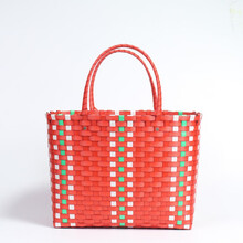 欣尔博惠手工编织菜篮子藤编塑料手提篮买菜蓝子洗澡蓝购物篮 大号红绿白 篮口钢丝加固