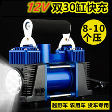 厦成车载充气泵双缸高压12V智能预设胎压液晶数显表汽车轿车越野车suv货车打气泵车用大功率德国 新款12v双缸数显300w电瓶取电+提包金属缸体30秒补气