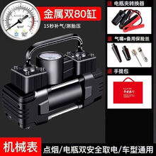 雷傲车载充气泵双缸大功率汽车便携打气泵轮胎12V电动高压打气筒 无灯+标配+收纳袋 指针-手动停机