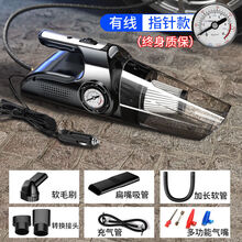 四合一车载无线吸尘器充气泵汽车户外车内家两用强力大功率可充电 指针款高端黑【有线】赠配件-无包