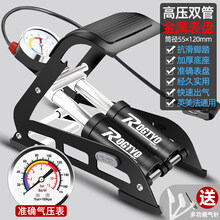 脚踩打气筒高压便携自行车摩托汽车电动电瓶车家用脚踩充气泵汽简 豪华金属气表双缸高压脚踩气筒 黑色-+气针【女生轻