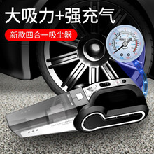 菲淼 车载吸尘器充气泵四合一12V大功率车用汽车打气泵小型迷你便携式强力干湿两用吸尘器 黑色机械-车用款【充气、照明、测胎压、吸尘】