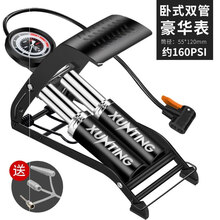 高压打气筒脚踏便携式车载充气泵汽车轮胎脚踩双缸小轿车用打气泵 卧式双管豪华【精准气压表】