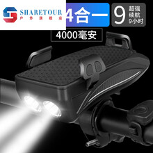 ‼️自行车灯夜骑灯前灯充电强光手电筒单车灯骑行装备山地车配件Sharetour 黑色4000毫安【T6双灯+充电宝+手机架+电喇叭