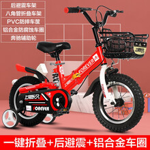 上海凤凰儿童自行车同款带辅助轮的男孩2-3-6岁小孩折叠脚踏单车16-18寸中大童女孩车 中国红(折叠+后避震+无后座) 标配款 12寸