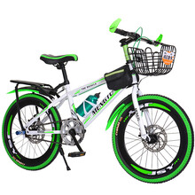新款少年自行车男女中小学生8-10-14岁20\/22寸24寸碟刹变速山地车 荧光绿单速高配+筐座 24英寸150-170cm
