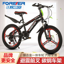 永久儿童自行车男孩女孩18/20/22单速变速山地车6-10-12-15岁男学生脚踏车 变速双碟刹一体轮黑色 20寸