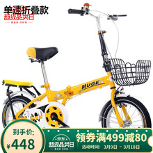 折叠自行车成人男女儿童中小学生休闲轻便迷你代步单车16 /20寸变速式小孩超便携 黄色(单速款)+车筐 12寸