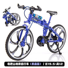 合金仿真折叠自行车山地车单车模型儿童玩具男孩男女朋友礼物摆件 折叠山地车【蓝】 彩盒装