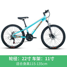 凤凰牌儿童山地车同款M210铝合金山地自行车青少年学生单车禧玛诺速越野碟刹 M210-A1 湖蓝色/橙白 11时/推荐115- 21速22英寸