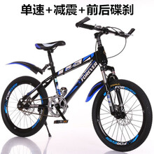 凤凰牌山地车旗舰同款儿童山地自行车越野自行车男孩20/18寸变速单车小学生10岁中大童碟刹 蓝色 辐条单速高配减震+碟刹+大礼包 18寸