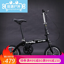 折叠自行车16寸14寸迷你超轻便携成人儿童学生男女款小轮变速碟刹沸鱼 14寸单速V刹低配黑色 适身高1.2-1.6米 14英寸