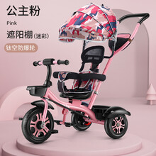 【京选好货】儿童三轮车脚踏车1-3-5岁大号单车宝宝手推车2-6女童车自行车商场同款 旋转款粉色-迷彩蓬-钛空轮