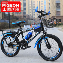 飞鸽儿童自行车单车女孩中大童车男孩山地脚踏车20-22-24寸小中学生6-9-15岁 【单速】黑蓝色+前框后座+骑行大礼包 20 寸 适合身高125-150CM
