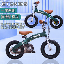 ETOKIDS日本儿童平衡车自行车二合一无脚踏滑步车2-6岁宝宝车小孩单车 森林绿(二合一) 12寸