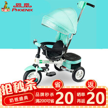 凤凰 儿童三轮车脚踏车可折叠婴儿手推车1-3岁童车小孩自行车宝宝三轮车 【天空蓝】一键折叠+旋转座椅+内置转向+前轮离合