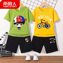 南极人【2套】儿童套装男童套装夏季洋气潮短裤T恤夏装两件套小孩衣服男童短袖中大童 星仔抹茶绿+星仔黑裤+自行车黄+自行车黑裤 160(建议146-153cm7...