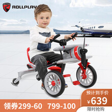 美国rollplay如雷儿童脚踏漂移车小孩脚蹬小飞机三轮自行车2-6岁男女孩玩具车生日礼物甩尾漂移车 红银色飞机车