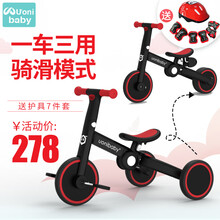 uonibaby儿童三轮脚踏车二轮平衡滑步车可折叠变形幼儿宝宝多功能手推三合一脚蹬车多模式遛娃神器 波尔多红+护具红色7件套(现货速发)