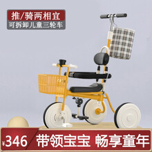 【酷嘎】日本儿童三轮车脚踏车宝宝自行车1-3岁幼儿车婴儿推车脚踏三轮车小孩2岁儿童车溜娃神器 黄车+黄框+护栏靠背+小脚踏