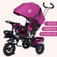 折叠可躺儿童三轮车脚踏车1-3-5岁可折叠宝宝手推车溜娃车童车多功能儿童自行车 黑紫红折叠可躺离合太空轮 066-1