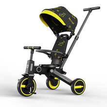 uonibaby儿童三轮车溜娃神器手推车带安全带可换向折叠轻便变形婴儿宝宝脚踏车 蝙蝠涂鸦圆棚 新色上市