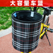 电动自行车车筐前车筐篮子儿童折叠单车通用框筐车头前置挂蓝篓子 黑色格子【无盖】
