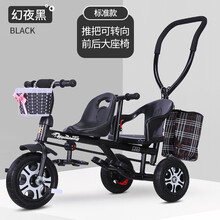 二胎双人儿童三轮车双胞胎宝宝脚踏车婴幼儿手推车轻便7岁大号童车 黑色 骑行双人