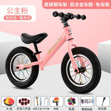 儿童平衡车滑行车无脚踏自行车2-3-6-8岁宝宝溜溜车12-14寸踏行车 14寸粉色充气轮【3-7岁】
