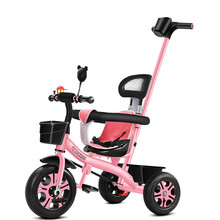 儿童三轮车脚踏车1-3-2-6岁大号宝宝婴儿手推脚踏自行车带蓬子护栏 【彩色轮】粉色+推把+护栏