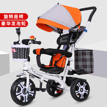 迪士尼新品多功能儿童三轮车脚踏车1-3-5岁宝宝手推车推骑两用婴幼儿自行车 桔红色 Y发泡轮桔红白旋