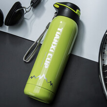 天喜(TIANXI)不锈钢带吸管杯成人保温杯儿童运动杯子自行车男女户外健身便携防漏骑行水杯 绿色460ml